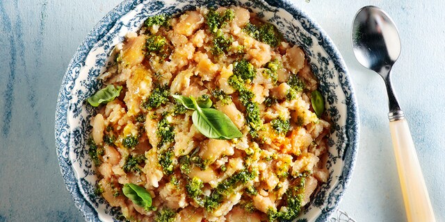 Χοντροσπασμένα φασόλια με πέστο βασιλικού