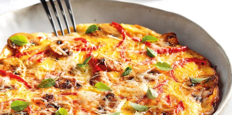 Ομελέτα μανιταριών με πιπεριά, βασιλικό και γραβιέρα