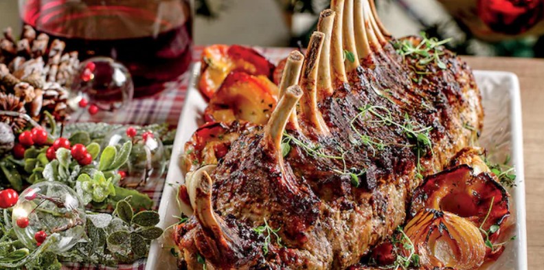 Χοιρινό καρέ μαριναρισμένο, με μήλα και κρεμμύδια